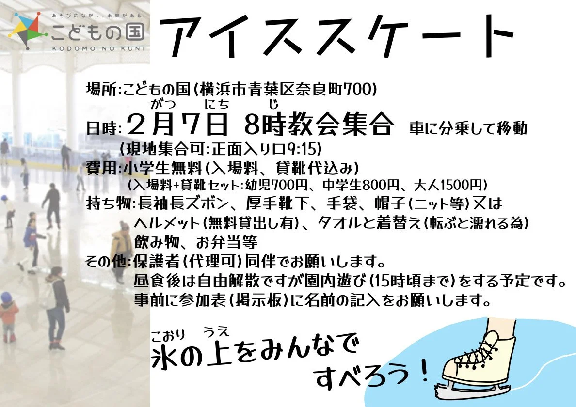 キッズ礼拝午後11時から場所:2階